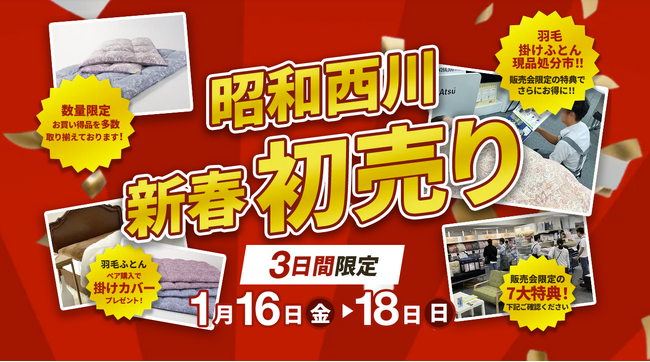 【昭和西川初売りセール開催!】大阪ショールーム限定、寝具商品を特別価格でご提供<1月16(金)より3日間限定>