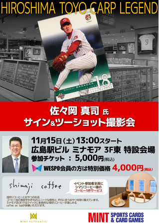 佐々岡真司氏によるサイン&ツーショット撮影会が11月15日(土)ミナモア広島で開催決定!