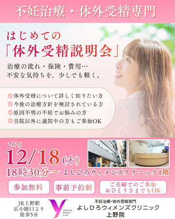 不妊治療のよしひろウィメンズクリニック、体外受精セミナーを12月18日(木)開催|治療開始前の不安や疑問に専門チームが答える、少人数制セミナー