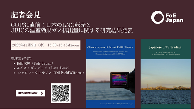 COP30直前記者会見:日本の「LNG転売」と「JBICの温室効果ガス排出量」を可視化する研究結果を発表