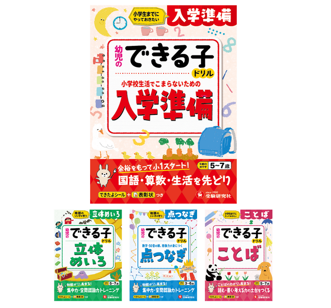 【入学前の不安を解消!】小学生までに身につけておくと安心。学習の基礎力や習慣が楽しく育める『幼児のできる子ドリル(入学準備/立体めいろ/点つなぎ/ことば)』が新登場!