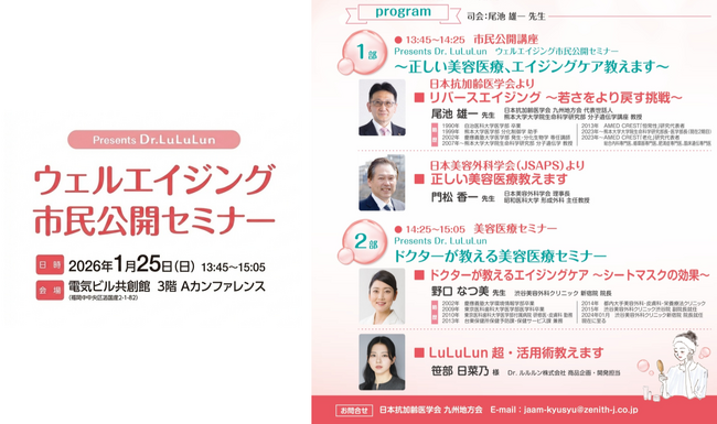 日本抗加齢医学会 九州地方会 × Dr.ルルルン株式会社 共催。「正しい美容医療とエイジングケア」を学ぶ市民公開講座を福岡にて開催