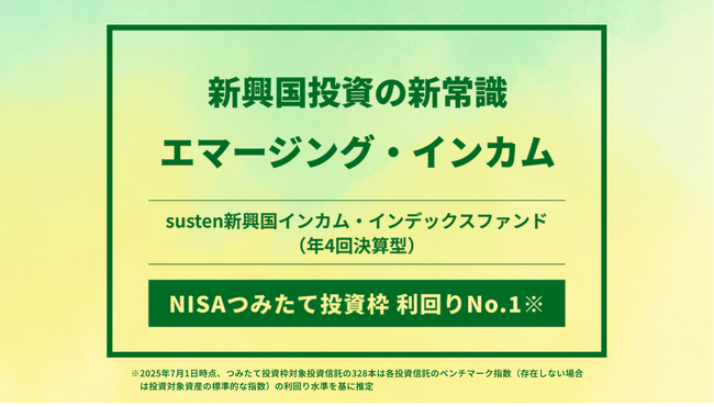 NISAつみたて投資枠対象の「susten新興国インカム・インデックスファンド(年4回決算型)」初回分配金を110円に決定