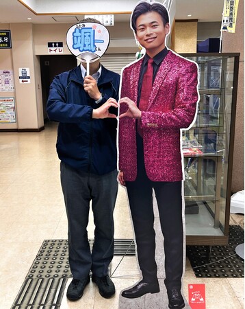 ファン必見!早めのクリスマスプレゼント!?演歌歌手二見颯一さん等身大パネルでお出迎え