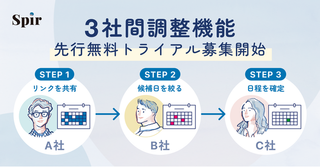 日程調整ツールのSpir(スピア)、3社間調整機能の先行無料トライアル募集を開始