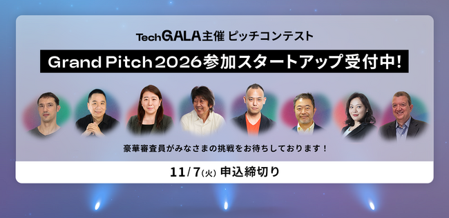 【11/7(水)締切】TechGALA主催ピッチコンテスト「Grand Pitch 2026」参加スタートアップ募集中 & 審査員決定!