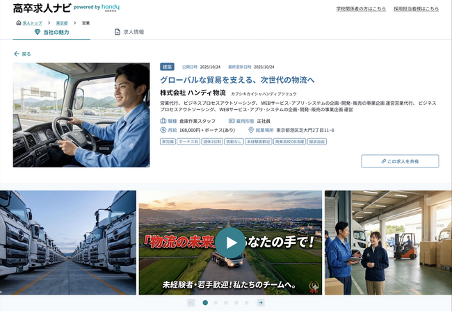 就職を希望する高校生の70%*を支える『Handy進路指導室』、高卒向け公開求人の検索サイト『高卒求人ナビ』をオープン。高校生の早期からの「業界研究」と「主体的な進路選択」が可能に
