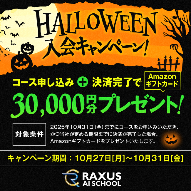 【期間限定】生成AIのオンライン学習サービス『RAXUS AIスクール』、ハロウィン入会キャンペーンを開催!