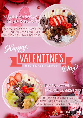 【2026年バレンタイン限定】SNSで話題の”ドバイチョコ”がアサイーボウルに!? DELISH KOSOから宝石箱のような贅沢バレンタインアサイー2種が期間限定で新登場!