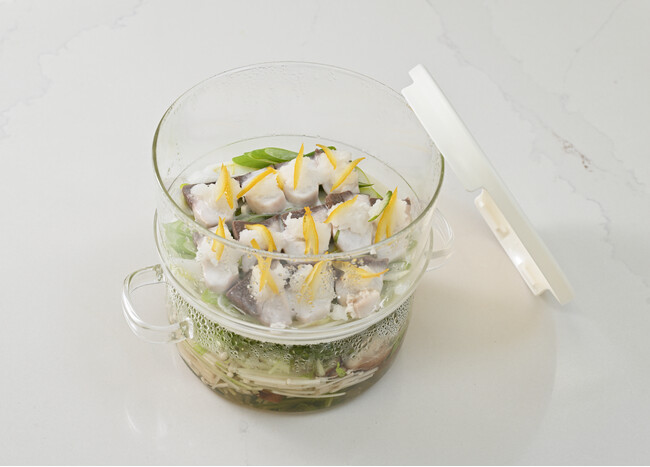 同時に2品、もっと自由に。蒸し調理の可能性を広げる、電子レンジ対応「ガラスのせいろ蒸し器」発売