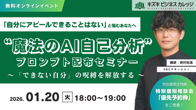 「自分にアピールできることはない」と悩むあなたへ「できない自分」の呪縛を解放する「魔法のAI自己分析プロンプト」配布セミナー【1/20開催/無料】