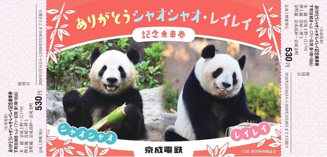 上野動物園のジャイアントパンダ返還に合わせ「ありがとう シャオシャオ・レイレイ記念乗車券」を期間限定にて発売します