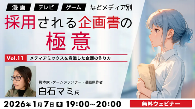 人気セミナー最終回!メディアミックスにおける企画書のポイントとは?1/7(水)無料セミナー「『漫画』『TV』『ゲーム』などメディア別 採用される企画書の極意Vol.11」