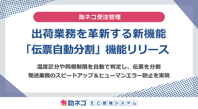 助ネコ(R)受注管理、出荷業務を革新する新機能「伝票自動分割」機能をリリース