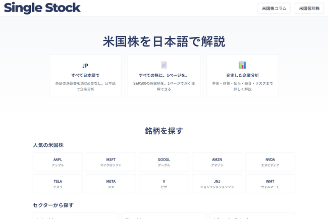 米国株の”検討の入口”を軽くする――S&P500を日本語1ページで俯瞰できる『Single Stock』正式リリース