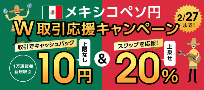 【メキシコペソ/円】スワップ20%増額&取引キャッシュバックのW取引応援キャンペーン開催!【トライオートFX | インヴァスト証券】