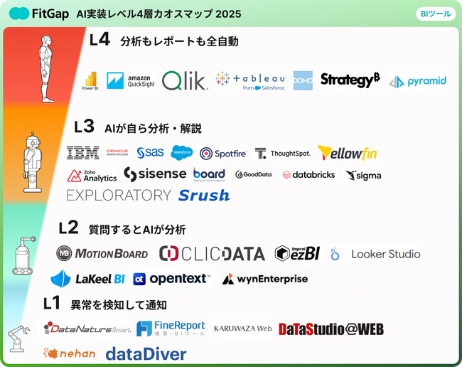 【無料公開】AI実装の段階が一目でわかる ー BIツールのAI実装レベル4層カオスマップ|2025完全版
