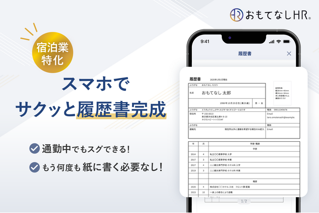 【おもてなしHR】履歴書作成時間を大幅短縮、スマホ完結の新機能をリリース