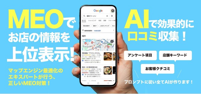 飲食店など店舗の口コミ獲得を“AIで仕組み化”する新サービス『クチコミMEOナビ』を提供