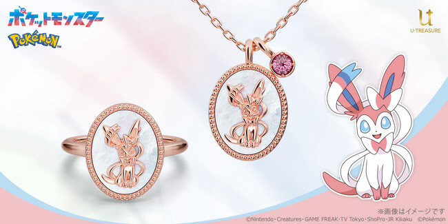 【ポケットモンスター】ニンフィアをデザインに施したネックレス&リング(指輪)。ピンクゴールドコーティングを施し、ニンフィアが持つ癒しの力を表現