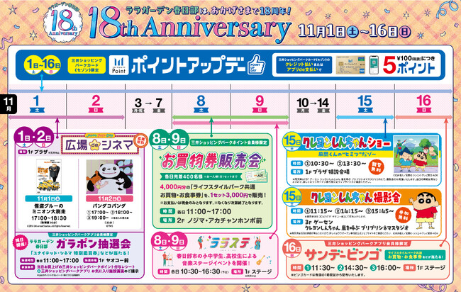 【三井ショッピングパーク ララガーデン春日部 18th Anniversary】開業18周年を記念したスペシャルセール&イベントを開催!