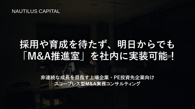 最短翌日から「M&A推進室」を社内に実装できる上場企業・PE投資先企業向け「スコープレス型M&A実務コンサルティング」サービスを本格提供開始。
