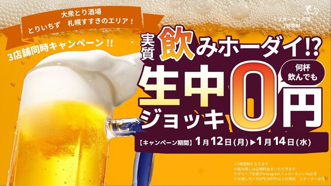 すすきのエリアに「とりいちず」2店舗が同日オープンノルベサ店を含む3店舗で生ビール0円キャンペーンを実施