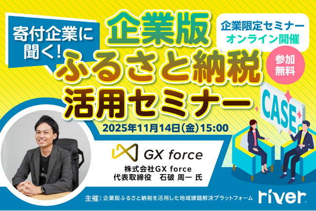 11/14(金)「寄付企業に聞く!企業版ふるさと納税活用セミナー」(株式会社GXforce登壇)開催のお知らせ