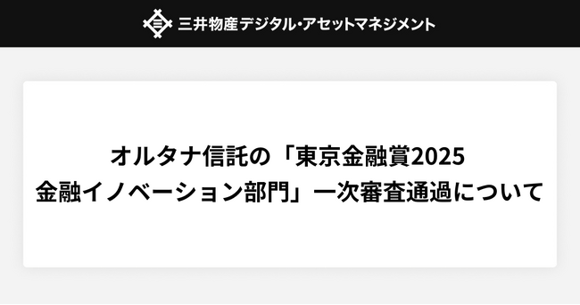 オルタナ信託が「東京金融賞2025 金融イノベーション部門」の一次審査を通過しました