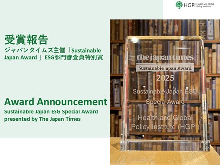 【お知らせ】日本医療政策機構が「Sustainable Japan Award 2025 ESG部門」審査員優秀賞を受賞(ジャパンタイムズ、2025年9月18日)