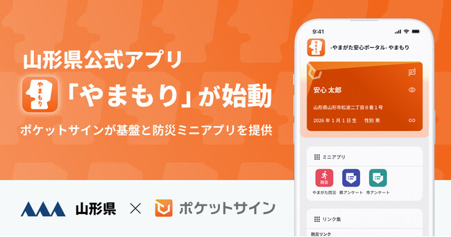 山形県公式アプリ「やまもり」が始動。ポケットサインが基盤と防災ミニアプリを提供