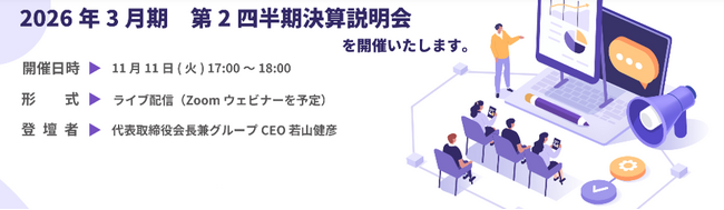 2026年3月期 第2四半期決算説明会(ライブ配信)開催のお知らせ