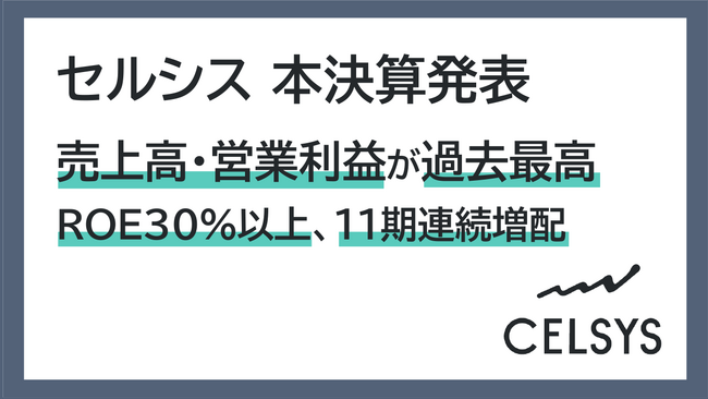 セルシス 2025年 本決算発表、売上高・営業利益が過去最高を更新 ROE30%以上達成、11期連続増配