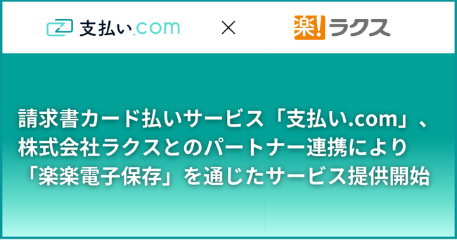 請求書カード払いサービス「支払い.com」、株式会社ラクスとのパートナー連携により「楽楽電子保存」を通じたサービス提供を開始