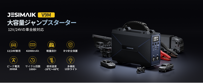 大排気量ディーゼル車も一発始動!JESIMAIK 多機能ジャンプスターター「V9M」新登場
