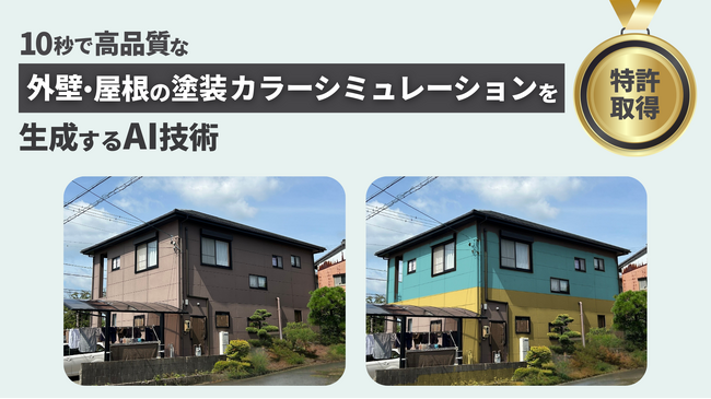 【塗装業の利益改善・人手不足解消と顧客満足度向上に貢献】10秒で高品質な外壁・屋根の塗装カラーシミュレーションを生成するAI技術が特許を取得