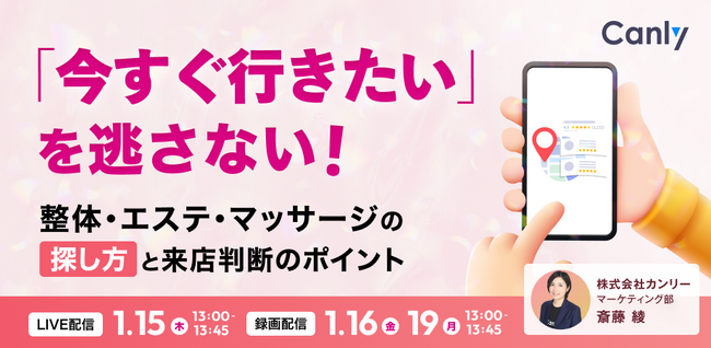 「今すぐ行きたい」を逃さない!整体・エステ・マッサージの探し方と来店判断基準|セミナー開催