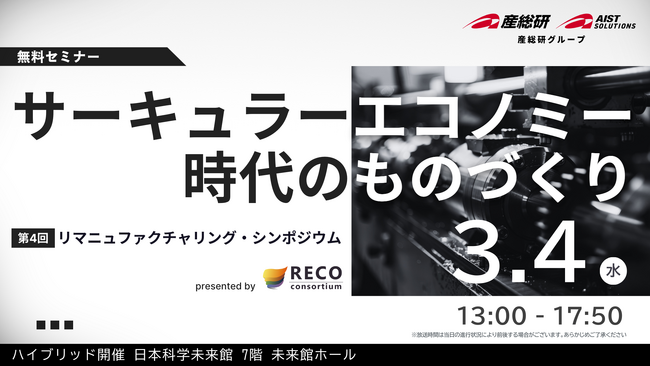 【3月4日/ハイブリッド開催】第4回リマニュファクチャリング・シンポジウム サーキュラーエコノミー時代のものづくり