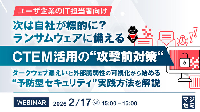 『【ユーザ企業のIT担当者向け】次は自社が標的に?ランサムウェアに備えるCTEM活用の“攻撃前対策“』というテーマのウェビナーを開催