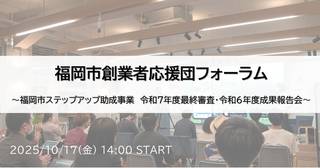 【10月17日開催】ファイナリスト5社の最優秀賞をかけた公開プレゼン審査会!福岡市創業者応援団フォーラム