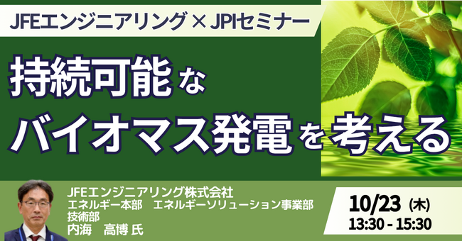 【JPIセミナー】JFEエンジニアリング(株)「持続可能なバイオマス発電を考える ~現状認識と将来の展望~」10月23日(木)開催