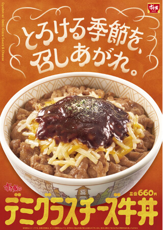 【すき家】とろける季節を、召しあがれ。寒い時期にぴったりの濃厚な味わい!すき家が「デミグラスチーズ牛丼」を新発売