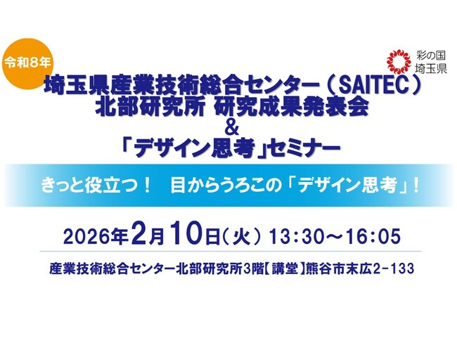 【埼玉県】産業技術総合センター(SAITEC)北部研究所「デザイン思考」セミナー&研究成果発表会の参加者募集!