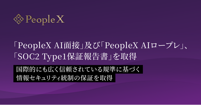 「PeopleX AI面接」及び「PeopleX AIロープレ」、「SOC2 Type1保証報告書」を取得
