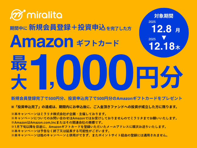 事業投資型クラウドファンディングプラットフォーム「ミラリタ」、第一号ファンドの立ち上げを記念し「第一号ファンド始動記念キャンペーン」開始