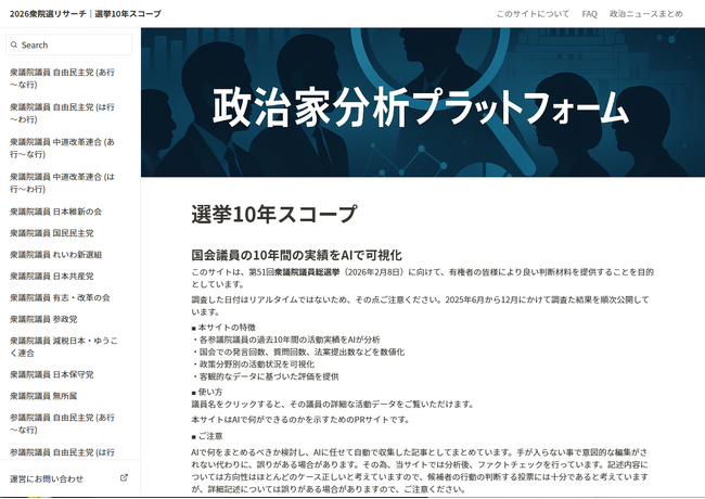 「選挙10年スコープ」、第51回衆院総選挙に向け衆議院議員の情報を更新