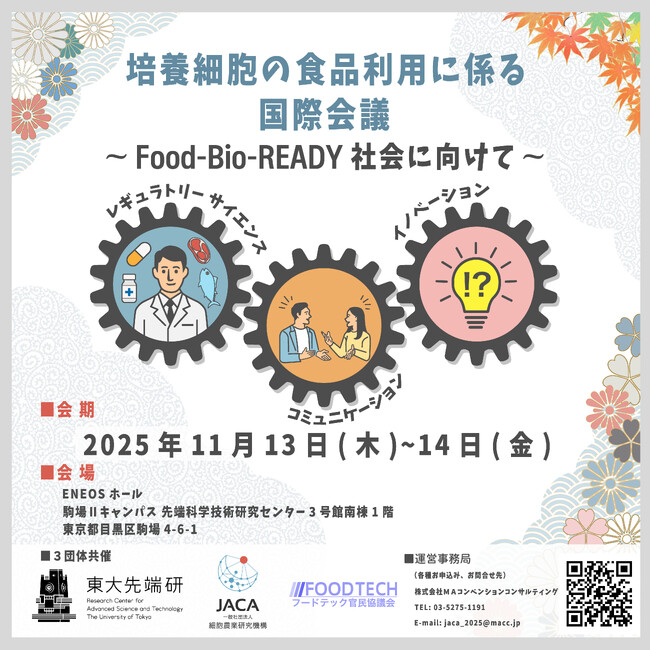 「細胞性食品(培養肉等)」の国際シンポジウム 東京大学先端研・JACAなどが共催【11月13日・14日】