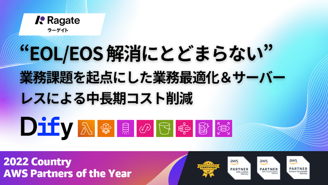 Ragate株式会社、EOL/EOS対応を変革の起点に。業務最適化とサーバーレスで運用コスト70%削減を実現する新サービス提供開始