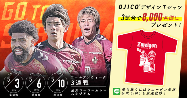 ゴールデンウィークはツエーゲン金沢を見にいこう!合計8,000名様に、OJICOデザイン「クラブ創設記念Tシャツ」プレゼント!