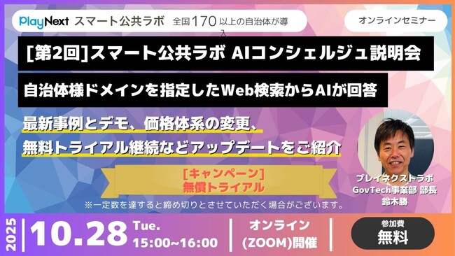 【好評につき第2回開催】自治体向け「スマート公共ラボ AIコンシェルジュ」オンライン説明会(10月28日開催)